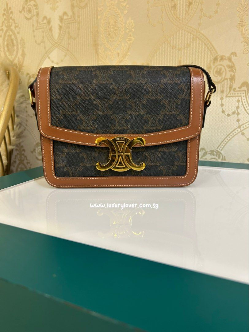 Like New Celine Teen Triomphe Bag Tan Canvas/Calf GHW(Cash S$2,750)
